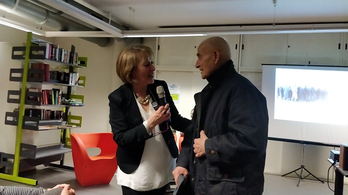 E’ stata una serata particolare, perché a un certo punto il libro si è materializzato in una storia raccontata dal vivo, quella del nichelinese Aldo Perin (nella foto con Antonella Bartolo).
