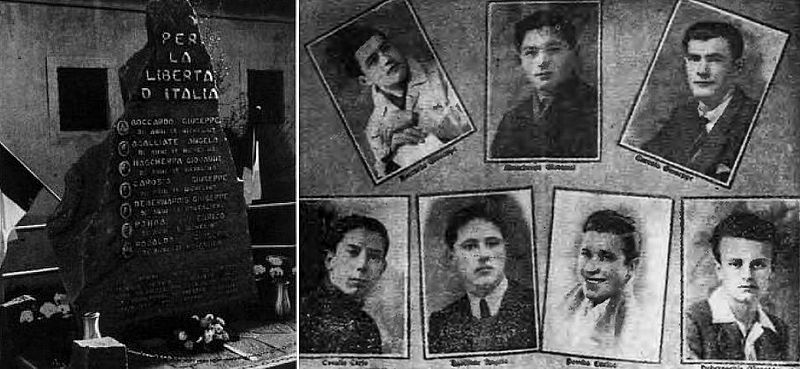 Nella frazione di Agliasco sono stati pure fucilati sul mattino dello stesso giorno, alla Gignosa, il partigiano diciannovenne Pomba Enrico, residente purea Nichelino e in altra località più in alto Cavallo Carlo, d'anni 18, da Moncalieri e tre altri, rimasti finora sconosciuti.