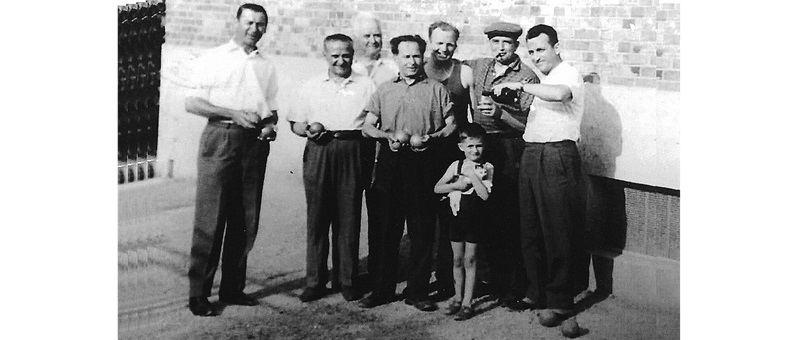 era estate, forse una domenica pomeriggio, perché qualcuno indossa ancora i la camicia bianca e i pantaloni del dì di festa. Cosa c’è di meglio di una partita tra vicini e un bicchiere di vino in compagnia? La scena è ambientata in via Bellini, una traversa di via Stupinigi, che all’epoca era ancora da asfaltare, e ben rappresenta l’ambiente di paese, prima che Nichelino diventasse una città. Allora passava qualche macchina ogni tanto e al massimo si fermava per lasciar finire la giocata. Le casette costruite negli anni Cinquanta in occasione della prima espansione edilizia del dopoguerra sarebbero state ben presto circondate da caseggiati a 5/6 piani.
