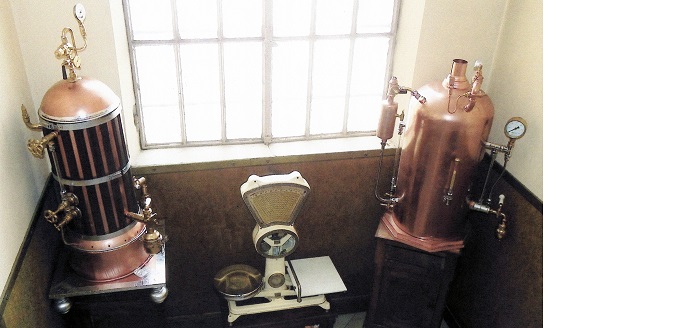 Ma il pezzo forte di questa rassegna è un “oggetto misterioso”, a forma di cilindro. Che sarà mai? Una piccola astronave? Ebbene no, si tratta della prima macchina per fare il caffè espresso.