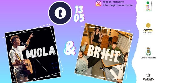 La serata sarà incentrata sulla musica, in occasione dell’Eurovision Song Contest che si terrà a Torino. Al Re Open saranno presenti due artisti emergenti nichelinesi: Daniele Miola e i BRIXIT (Alessio, Davide, Gabriele e Lorenzo).