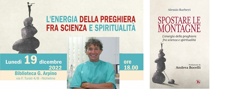 Lunedì 19 dicembre 2022 alle 18 presso la Biblioteca civica di Nichelino incontro con Alessio Barberi, medico e scienziato, che presenta il suo libro “Spostare le montagne - l’energia della preghiera fra scienza e spiritualità” (TS Edizioni)