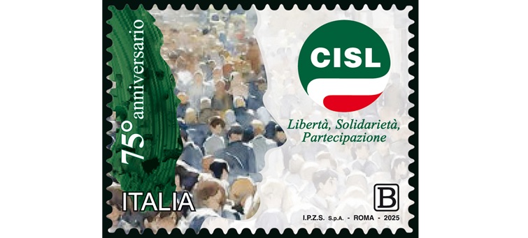 Poste Italiane ha emesso un francobollo in occasione del 75° di fondazione del sindacato CISL.