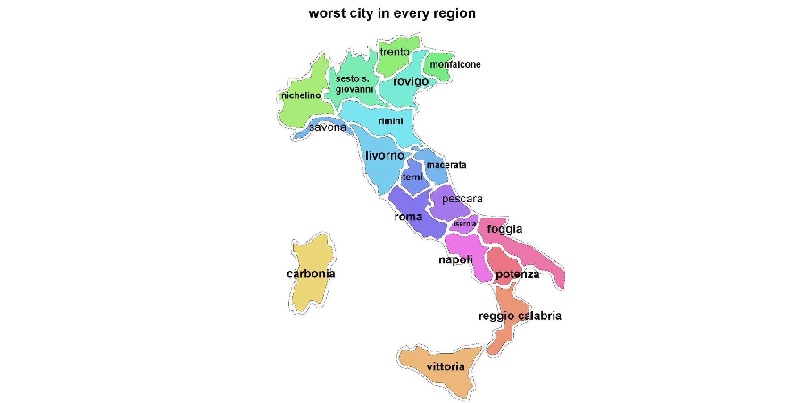 Chissà chi è il buontempone che sì è inventato questa balzana mappa mettendo in evidenza le peggiori città in Italia.
