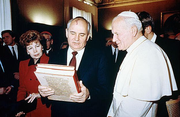 “È un uomo di principi”, così Giovanni Paolo II definì Michail Gorbaciov all’epoca dello storico incontro in Vaticano e della caduta del Muro tra Est e Ovest.
