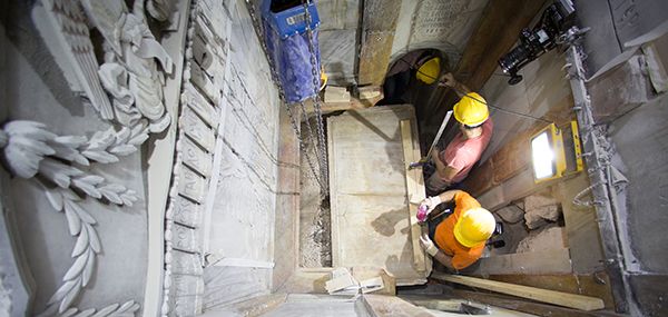 I restauri all'interno della Basilica del Santo Sepolcro a Gerusalemme. E’ stata rimossa la lastra di marmo che ricopriva la tomba in cui fu deposto il corpo di Cristo.