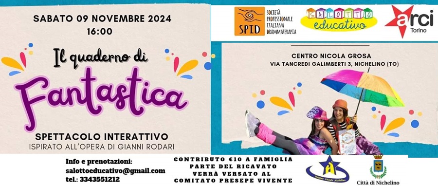 Sabato, 9 novembre 2024 alle ore 16 al Centro Nicola Grosa, in via Galimberti 2 Nichelino va in scena lo spettacolo “Il quaderno di Fantastica”, ispirato all'opera di Gianni Rodari.