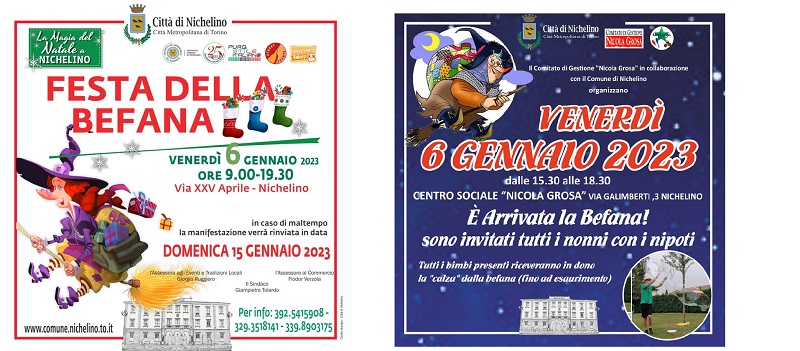 Venerdì 6 gennaio, dalle ore 9 alle 19.30 in via XXV Aprile a Nichelino: apertura straordinaria dei negozi e bancarelle; gonfiabili; trenino della Befana;