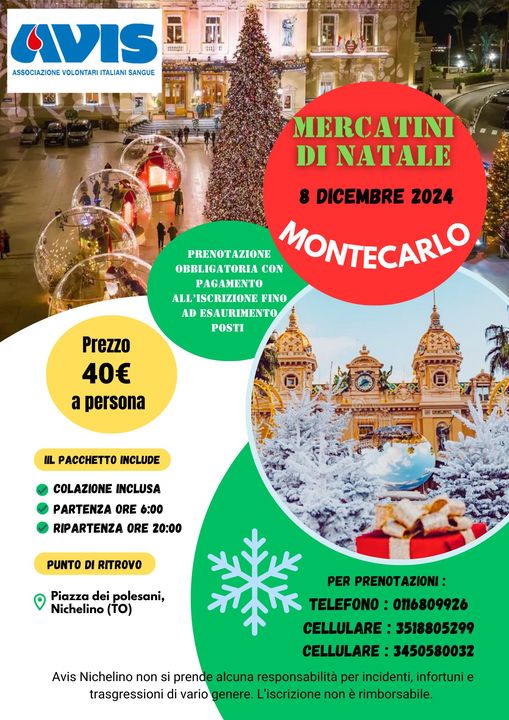 Natale di Montecarlo. La partenza è prevista alle ore 6 in piazza Polesani nel Mondo, la quota