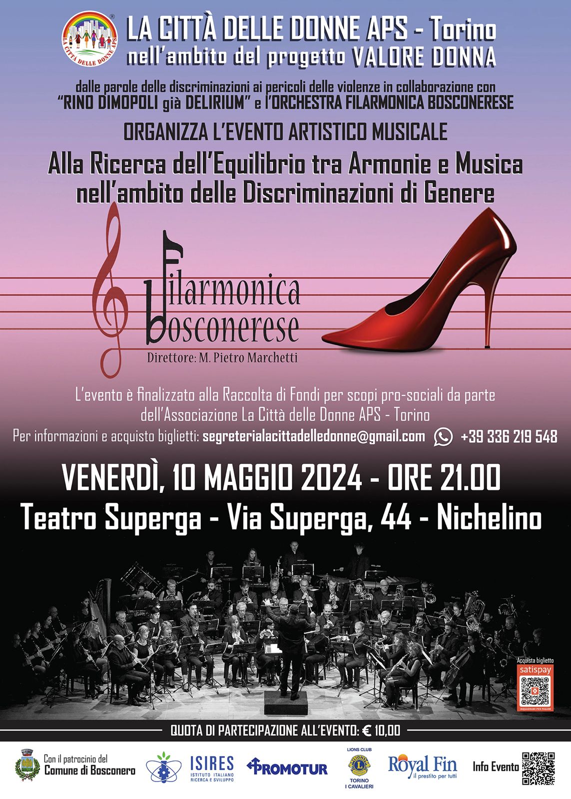Venerdì 10 maggio alle ore 21 al Teatro Superga si terrà un evento artistico musicale organizzato da "La città delle donne" nell'ambito del progetto Valore Donna.