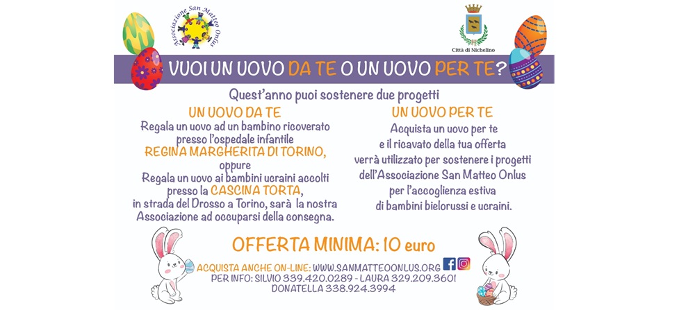 La Pasqua si avvicina e l'associazione San Matteo Onlus presenta anche quest'anno la raccolta fondi attraverso la vendita delle Uova di Cioccolato per sostenere due importanti progetti.